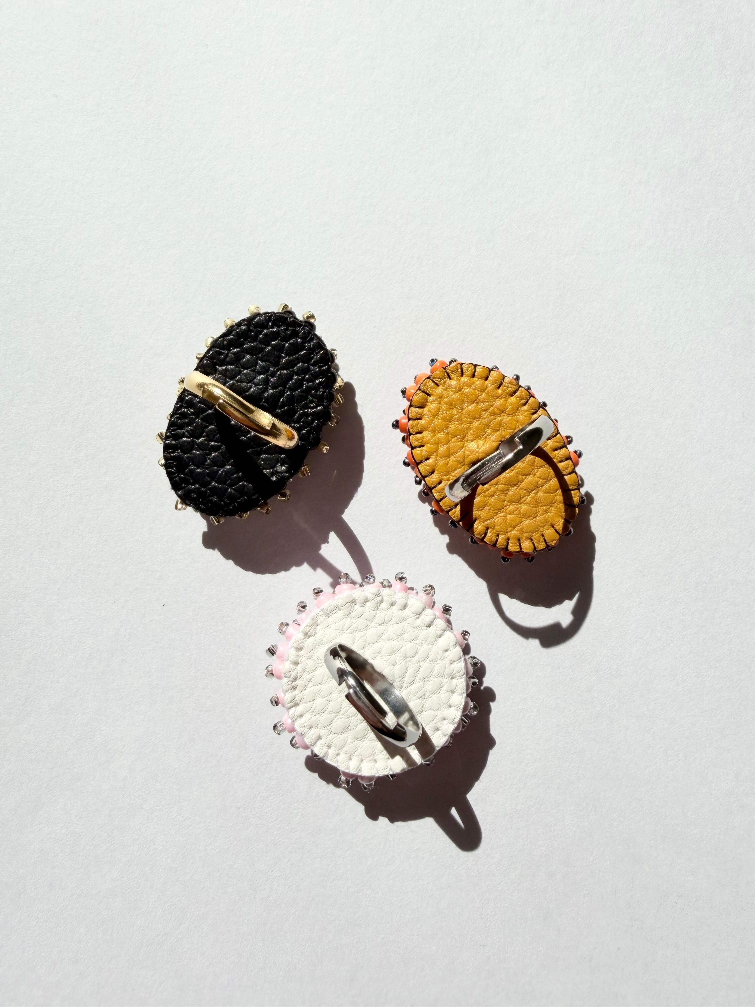 丸顔のもじゃ花の指輪